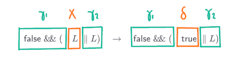 If you think back to the previous example, you will notice that a key part of the grammar is manipulating sequences of terminals and nonterminals, like \(\ff \andop (L \orop L)\). One could think of these as strings over the alphabet that consists of the terminals the nonterminals combined, but I would rather reserve the word string only for sequences of terminals. (Possibly) mixed sequences of terminals and nonterminals are known as sentenial forms.