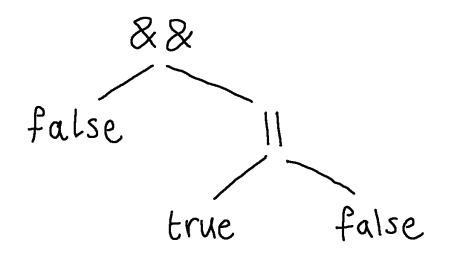 Notice that, in the abstract syntax tree, we have discarded the parentheses that were around the subexpression true || false